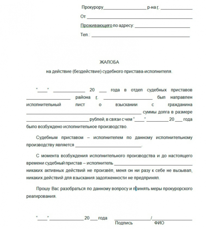 Стоит отметить, что подача жалобы в прокуратуру является наиболее действенным методом. Такие жалобы удовлетворяются в 90 % случаев. Плюсом является также то, что прокурор может потребовать выполнить определенные указания, установить срок для выполнения конкретных действий и при необходимости наказать пристава. Таким образом, обращаясь с жалобой в прокуратуру, вы за 30-дневный срок получите реальные действия (сдвиги) по исполнительному производству.